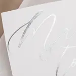 Eleganckie zaproszenie ślubne z kolekcji NO21 to połączenie luksusu, nowoczesnego stylu i personalizowanego podejścia do każdego zamówienia. Ten model przyciąga wzrok subtelnym tekstem, szlachetną bielą papieru oraz minimalistycznym, a zarazem efektownym projektem.