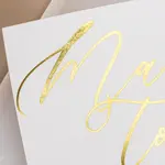 • Papier premium: Wysokiej jakości, sztywny papier o gładkiej fakturze i gramaturze 300g, podkreślający klasę zaproszenia.