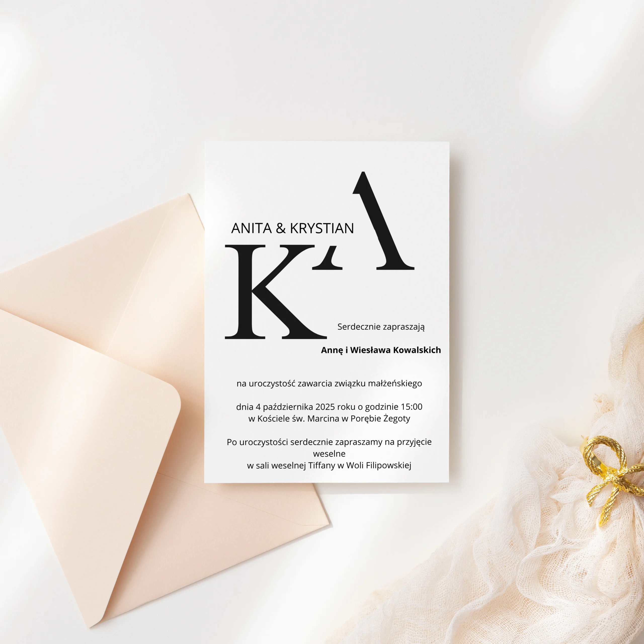 Zaproszenie o wymiarach 11,5×16,5 cm doskonale sprawdzi się zarówno na kameralnych przyjęciach, jak i dużych uroczystościach – stanowi idealny wybór dla Par Młodych poszukujących nowoczesnej elegancji.